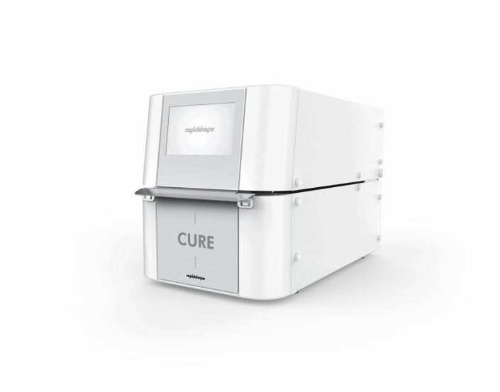 Washing 3D printed parts in just about 6-8 minutes featuring clean handling of sticky resins (patents pending) gets easy by the automatic cleaning unit. The consumption of cleaning agent is reduced to a minimum, while ensuring optimal cleaning results. The WASH and CURE are seamlessly connected to the corresponding 3D printer to ensure the easiest handling. This allows the cleaning unit to exactly define which cleaning program has to be selected.